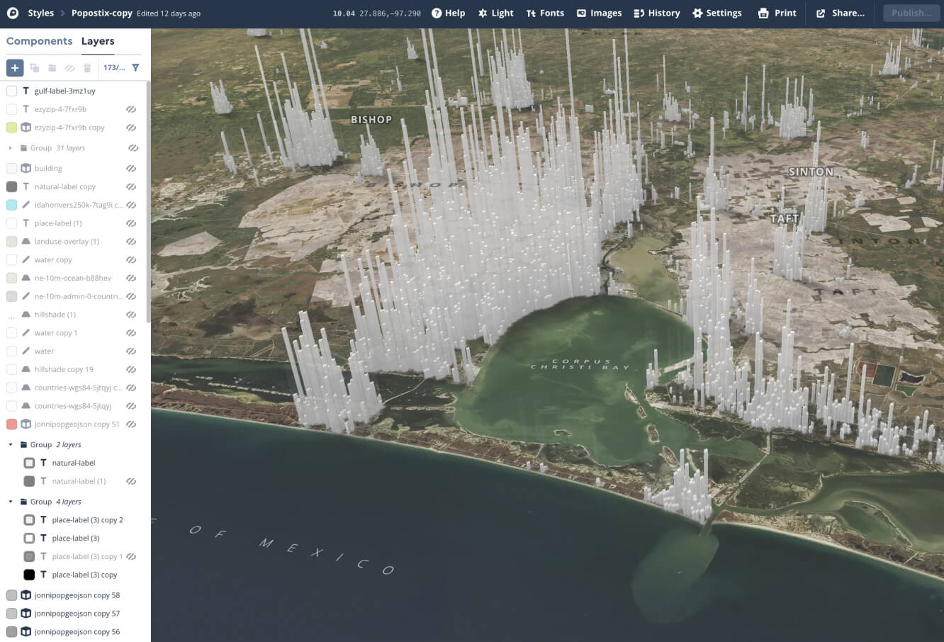 Mapbox Studio is like Photoshop, for maps. We give designers control over everything from colors and fonts, to 3D features and camera angles, to the pitch of the map as a car enters a turn.