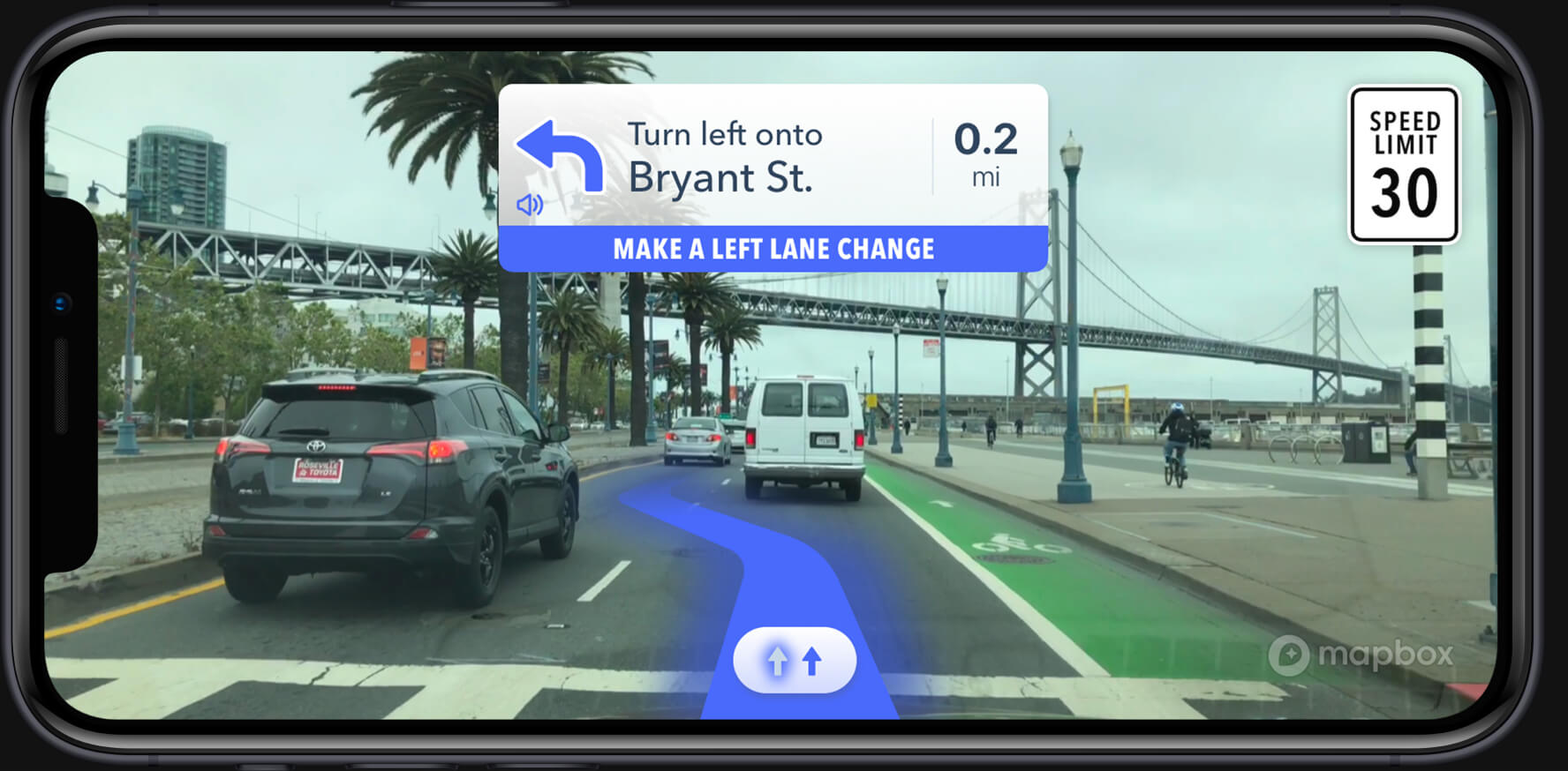 The Mapbox Vision SDK describes every curb, lane, street sign, and road hazard it sees as data. Developers use the SDK's AI-powered semantic segmentation, object detection, and classification to deliver precise navigation guidance, display driver assistance alerts, and detect and map road incidents.