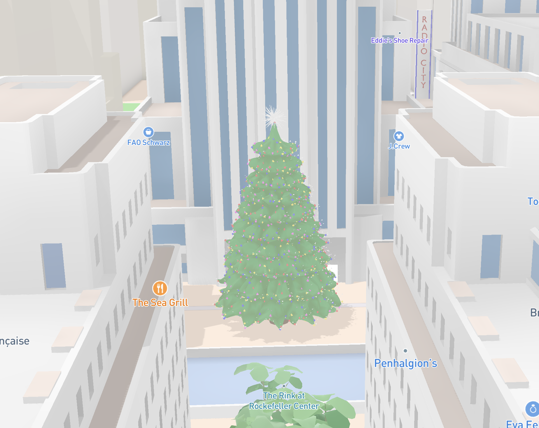 For December, Mapbox Standard will also include custom designed Christmas trees in 100 cities to add a festive flair to the style. Cities pictured below are Frankfurt, New York, and Tokyo.