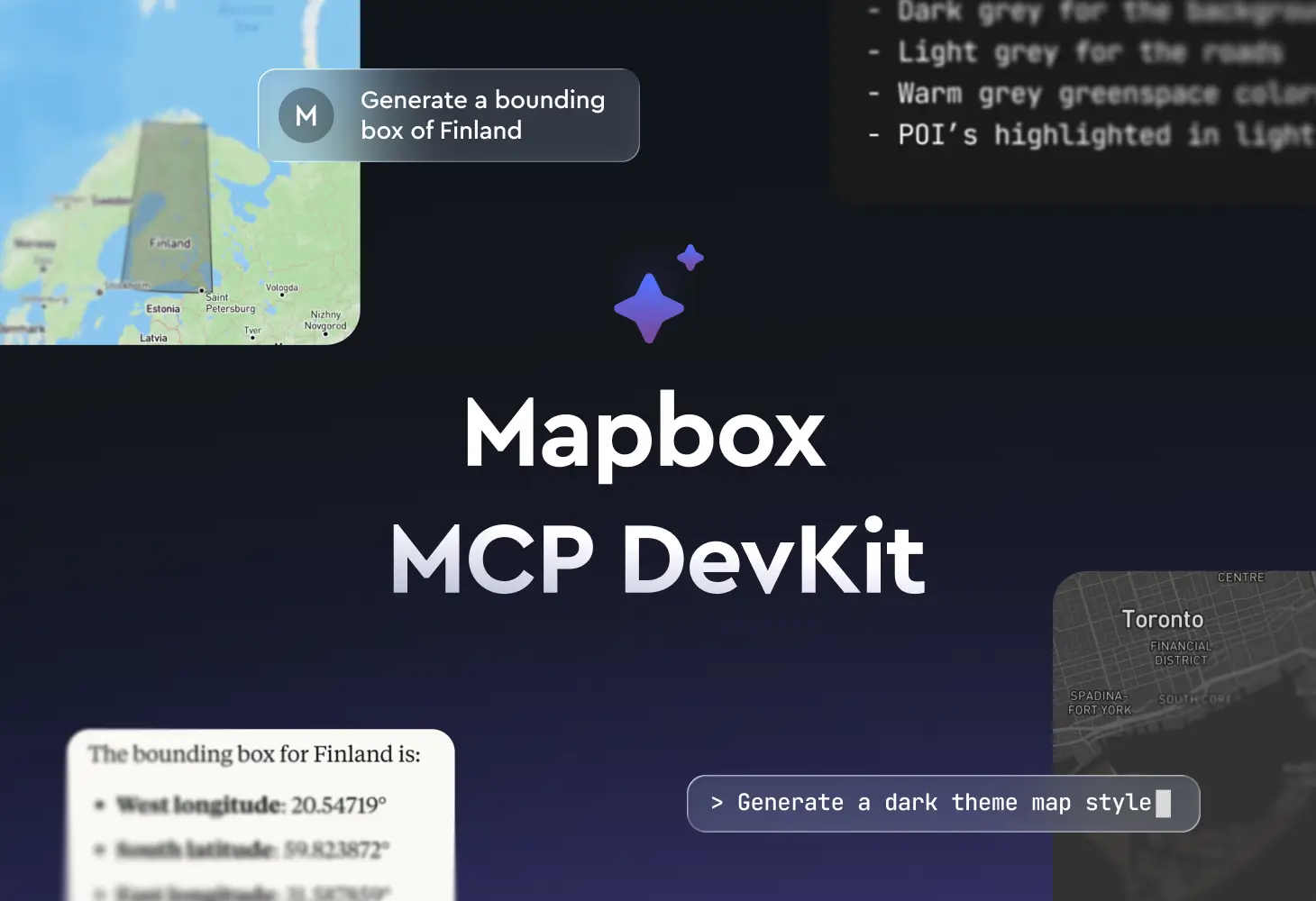 Supercharge Mapbox development workflows with a natural language execution layer for tokens, styles, data formatting, and more.