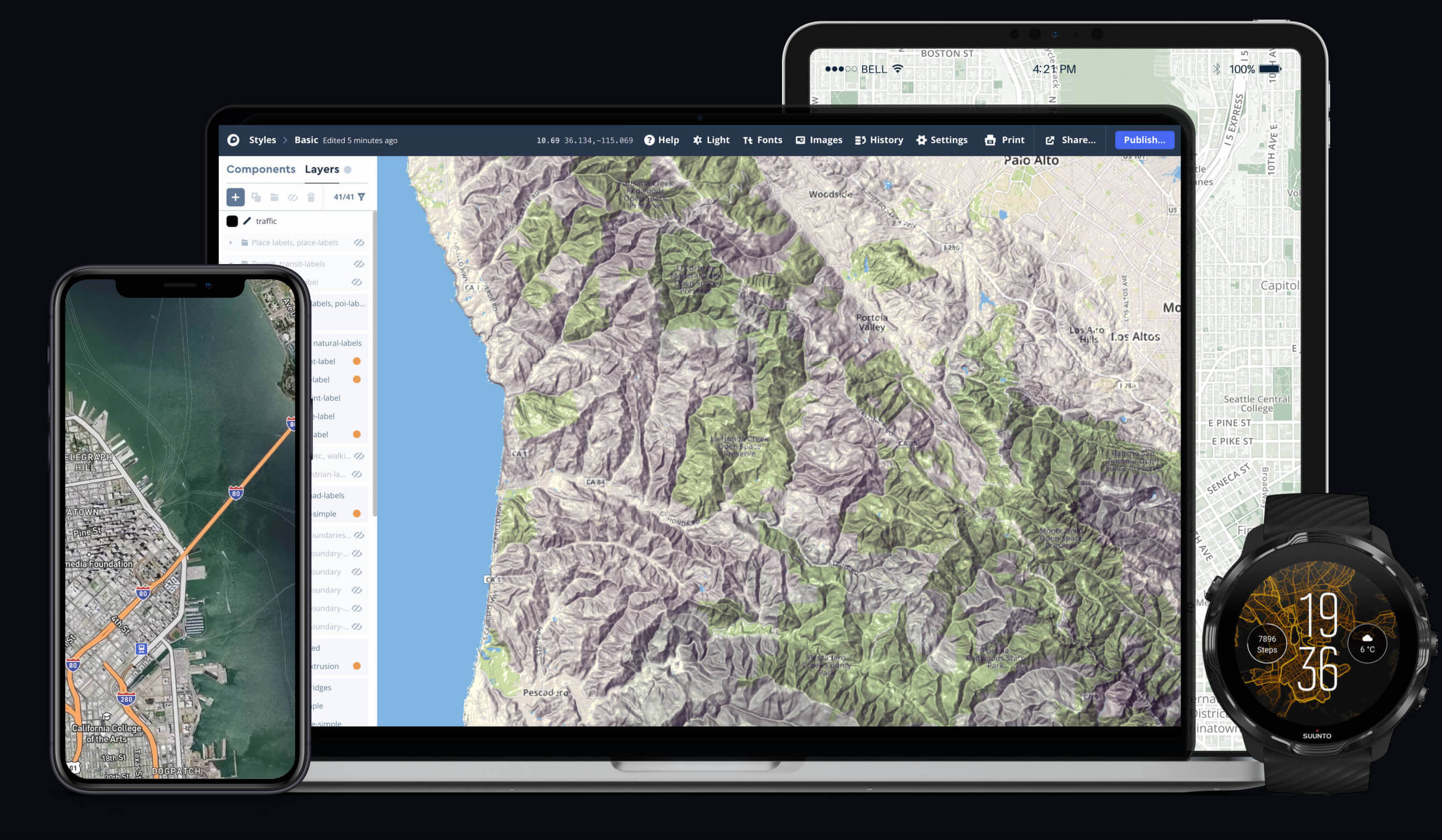 A complete design ecosystem that lets you create, manage, and export maps and custom data.